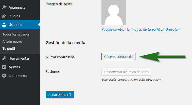 2.- Cambiar los datos de acceso desde el interior de nuestro WordPress.